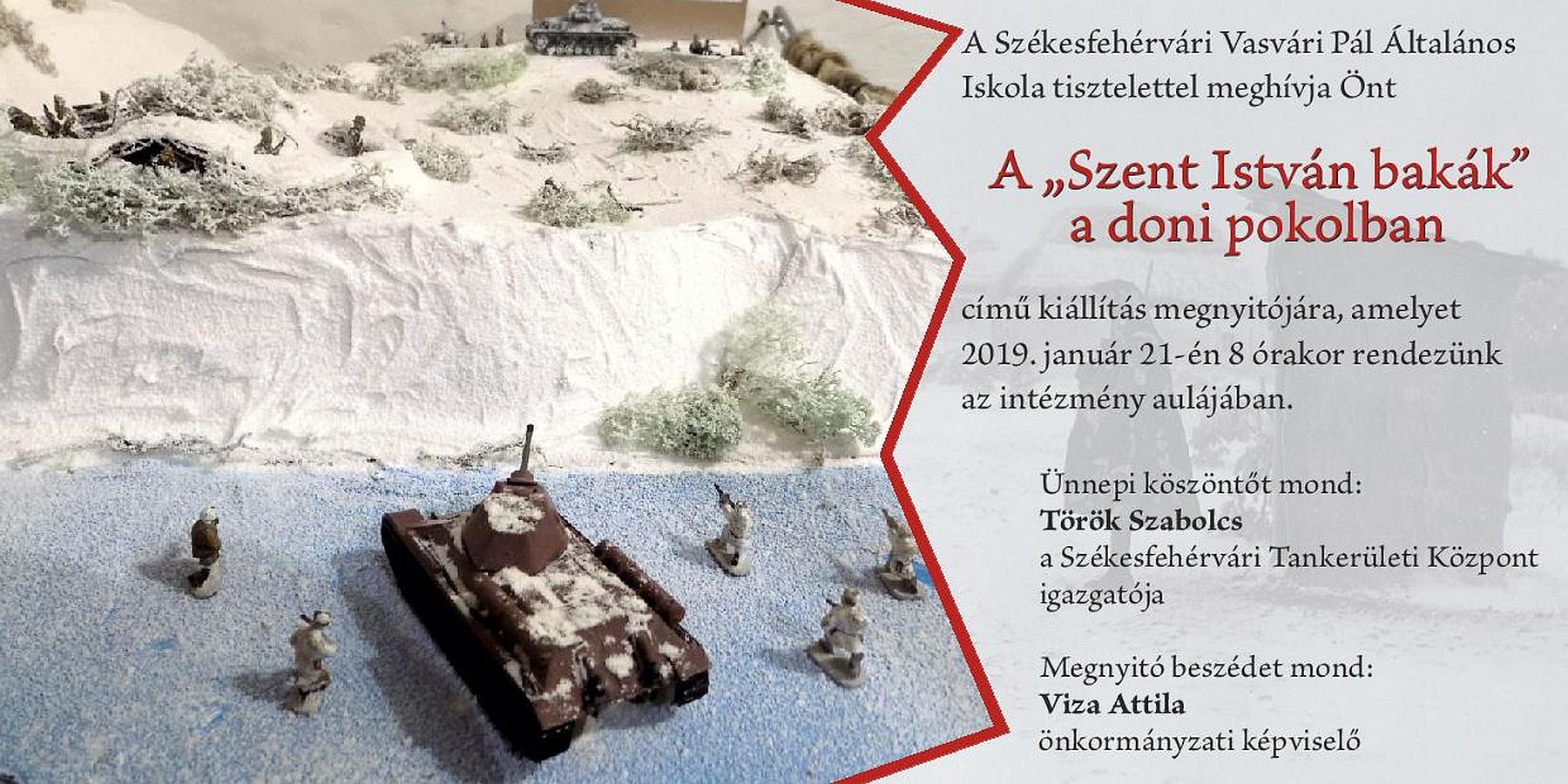 A "Szent István bakái" a doni pokolban c. kiállítás megnyitója iskolánk Siklósi Gyula pincegalériájában.