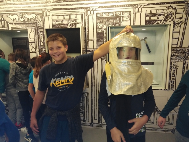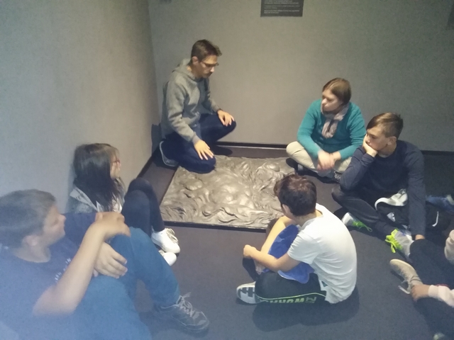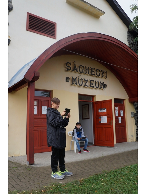 Az előadás után megnéztük a Sághegyi Múzeumot, mely mellett Eötvös Lóránd emléktáblája látható. A Sághegy Múzeum ötletekkel teli interaktív kiállítás. Bemutatta a táj természeti és a kultúrtörténeti értékeit, a Ság hegy régészeti anyagának egy részét, a bányászat és a szőlőművelés történetét. A múzeumban megtekinthető az eredeti Eötvös inga továbbfejlesztett változata. István bácsi az iskolában elkészített modellel is szemléltette az inga működési elvét. A múzeum körül kisebb kőpark is található. 10 hatalmas kőtömb történetéről szerezhettünk ismereteket. Itt a Seppo programmal internetes feladatokat oldottunk meg.