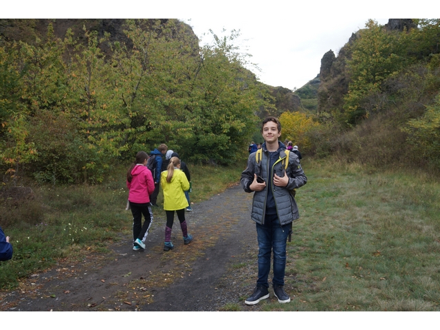 Megérkezésünk után megreggeliztünk és megnéztük a Kemenes Vulkán Parkot, Itt egy érdekes előadást hallgattunk meg a Ság hegy kialakulásáról, a vulkánok működéséről, a pusztító tevékenységükről, a leggyakrabban kialakuló ásványokról, a lefontosabb alkotó kőzetekről és ezek bányászatáról. Felkészülésem során a növény- és állatvilágról is sokat olvastam, de erről itt nem tettek említést. Megnézhettük a vulkanikus kőzeteket, és közelről megvizsgálhattuk a kihűlt vulkánokból kialakult kőzetek sokszínűségét. Számomra ez nagyon érdekes és különleges volt.