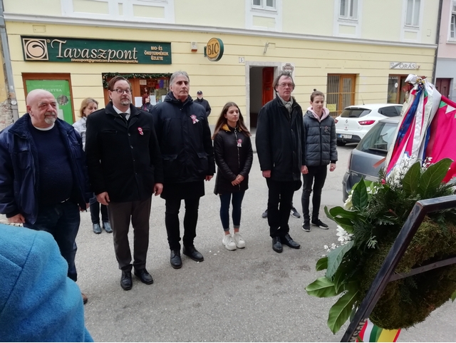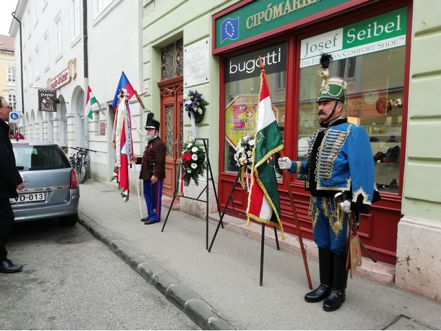 A megemlékezés a Rónay Jácint emléktáblánál foytatódott, ahol iskolánk egy kisebb delegációja koszorút helyezett el.