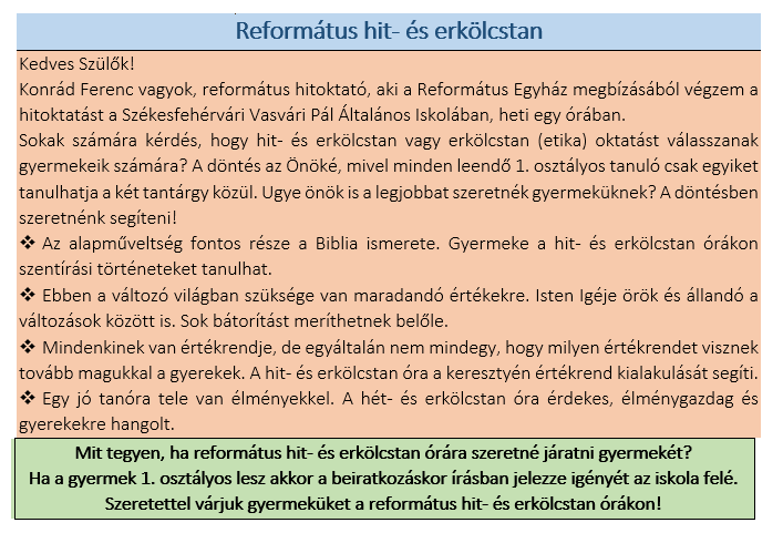 HIT- és ERKÖLCSTAN OKTATÁSA