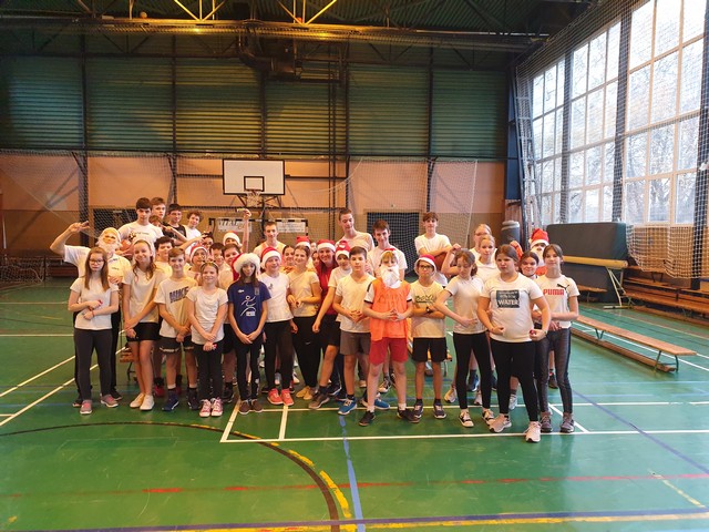 biztatták egymást. A szurkolás sem maradt el, ami még jobban lelkesítette a versenyzőket. A verseny végén mindenkinek hozott a Mikulás egy kis édességet, a győztes csapat tagjai pedig csokinak örülhettek.