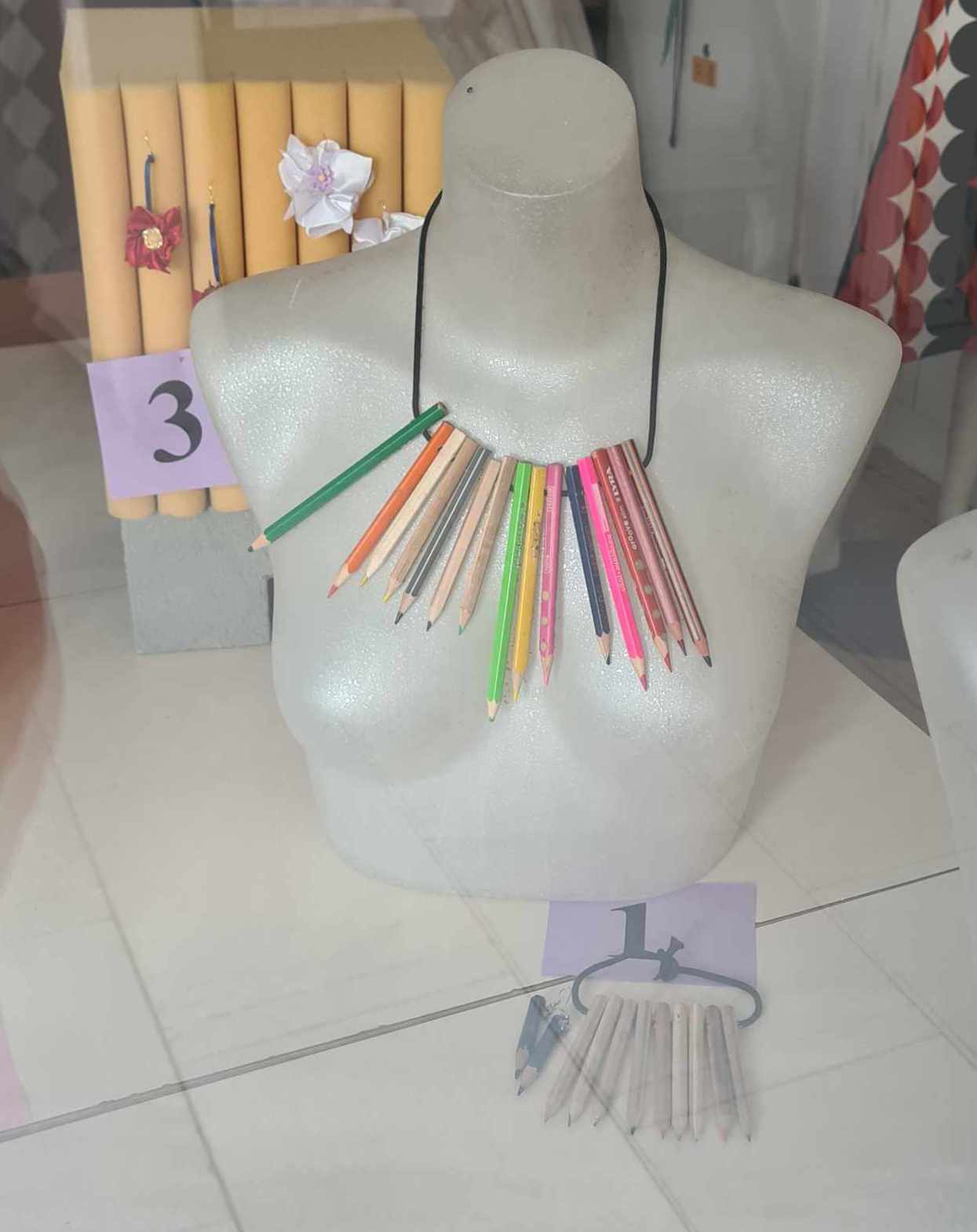 Schulcz Kamilla 5.a osztályos tanuló elkopott, elfaragott ceruzákból cipőfűzőre