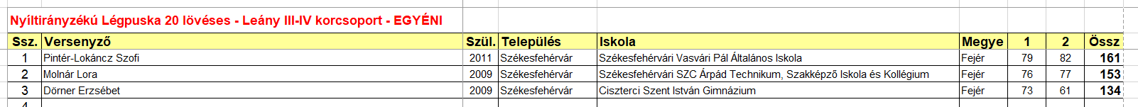 • A tanév, Magyarország Sportlövészet Diákolimpia® Bajnoka” címének, valamint a további