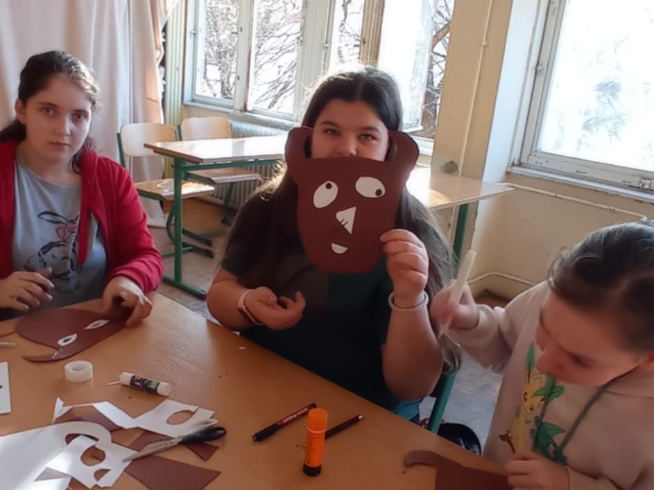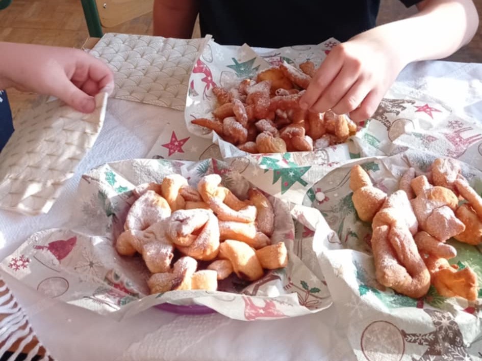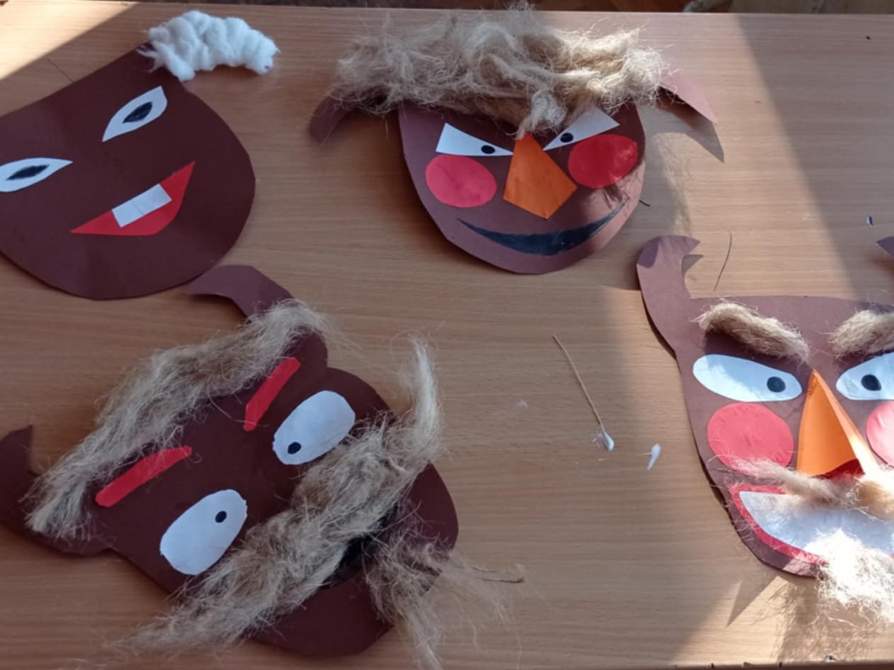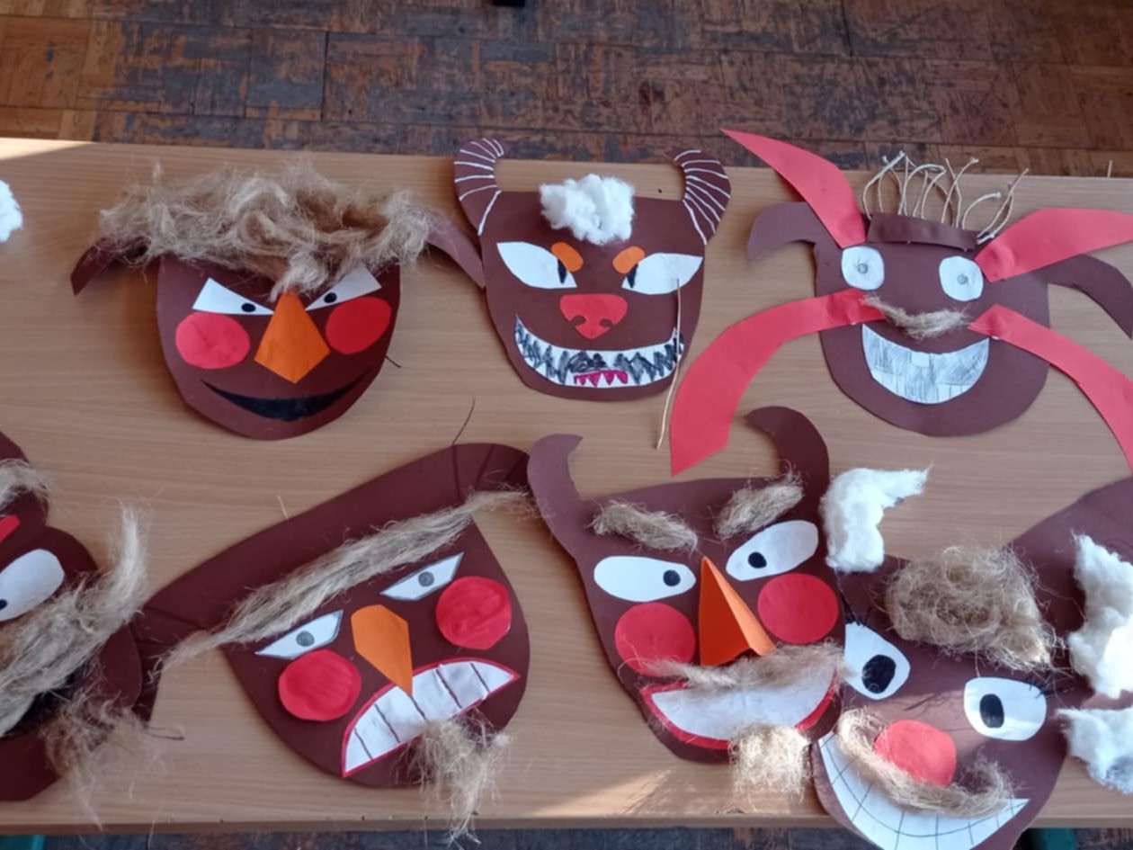 A Népi kézműves szakkör résztvevői busóálarcot készítettek. Eközben kisült a csörögefánk, amit jóizűen elfogyasztottak.