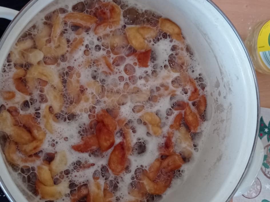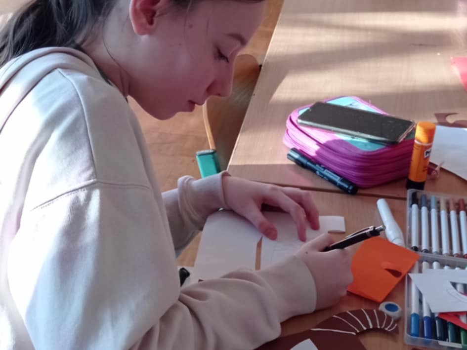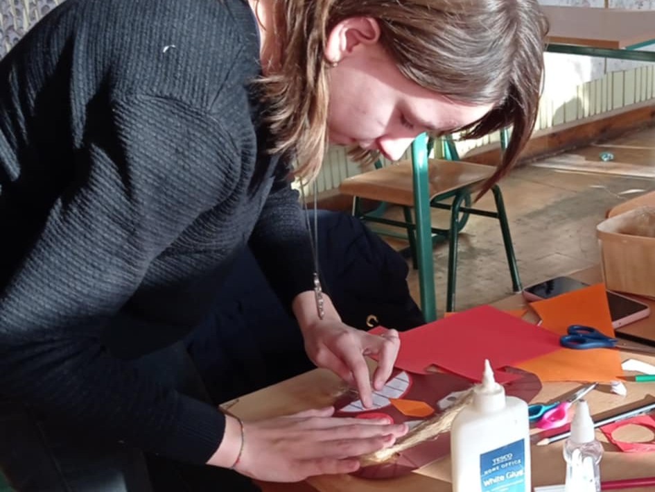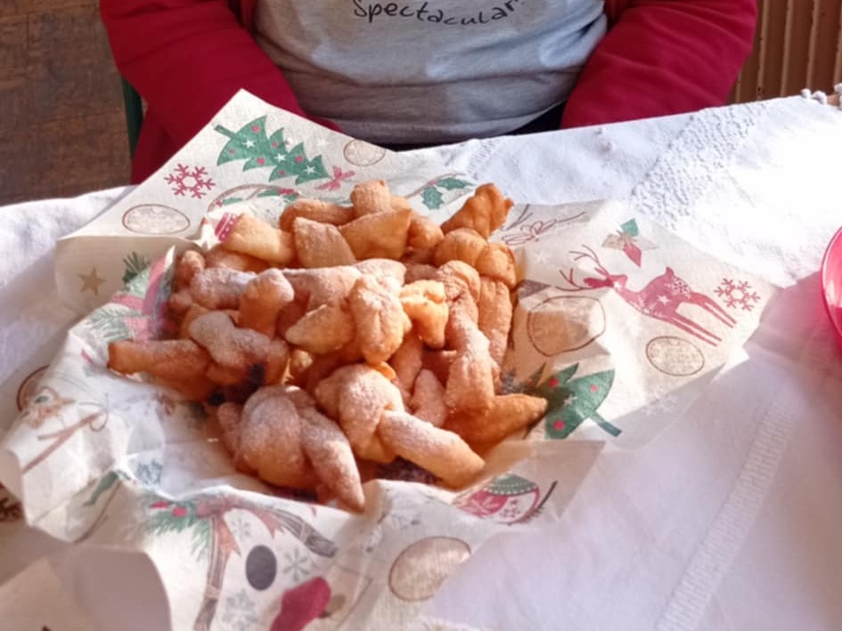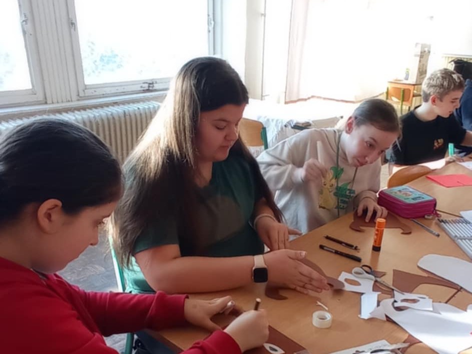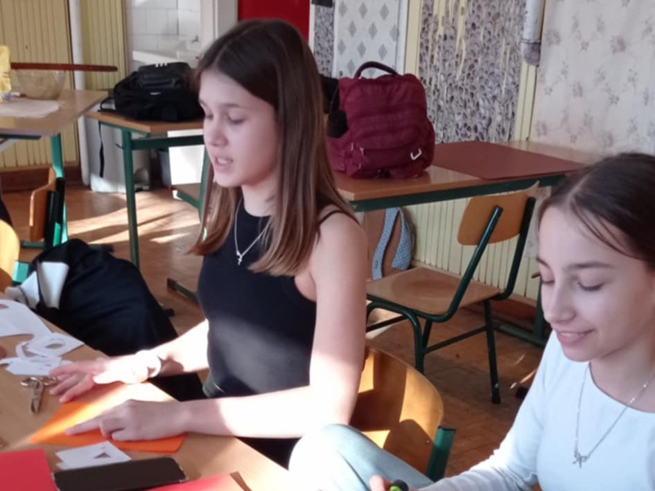 A Népi kézműves szakkör résztvevői busóálarcot készítettek. Eközben kisült a csörögefánk, amit jóizűen elfogyasztottak.