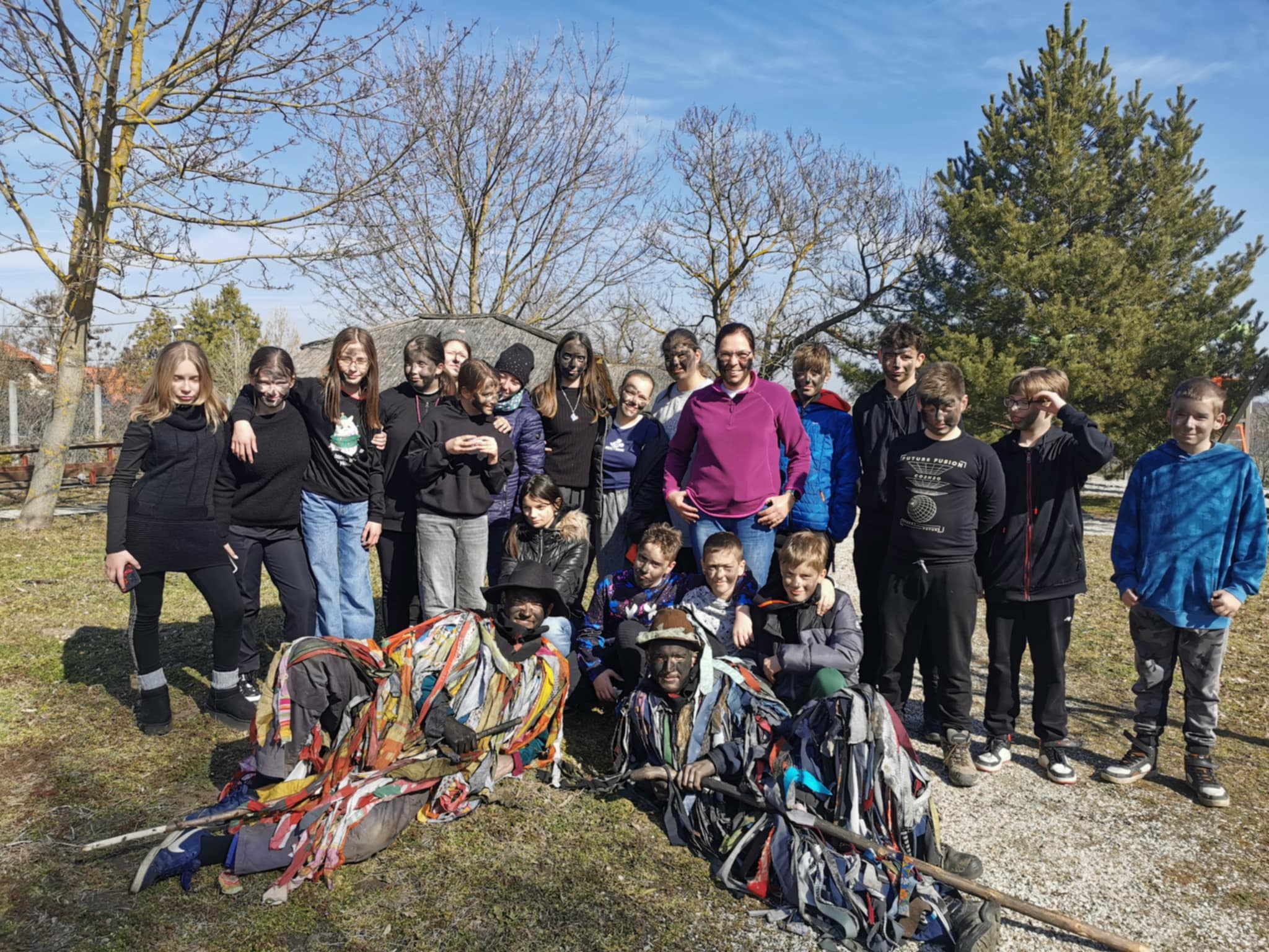 Mivel mohai diákunk is van a 6.a-ban, mi is úgy gondoltuk, a Kolek család kedves meghívását nem szabad visszautasítani. Már kora reggeltől részt vettünk hát az idei farsangi programon, megcsodálva az ugyancsak vendégségbe érkező fellépő táncos családot, menekülve a kormot kenő bohócoktól, élvezve a tavasz első melengető napsugarait. Piszkosan, elcsigázva, de annál jobb kedvvel érkeztünk vissza az iskolánkba, hivatalosan is megnyitva a tavaszváró programok sorát.