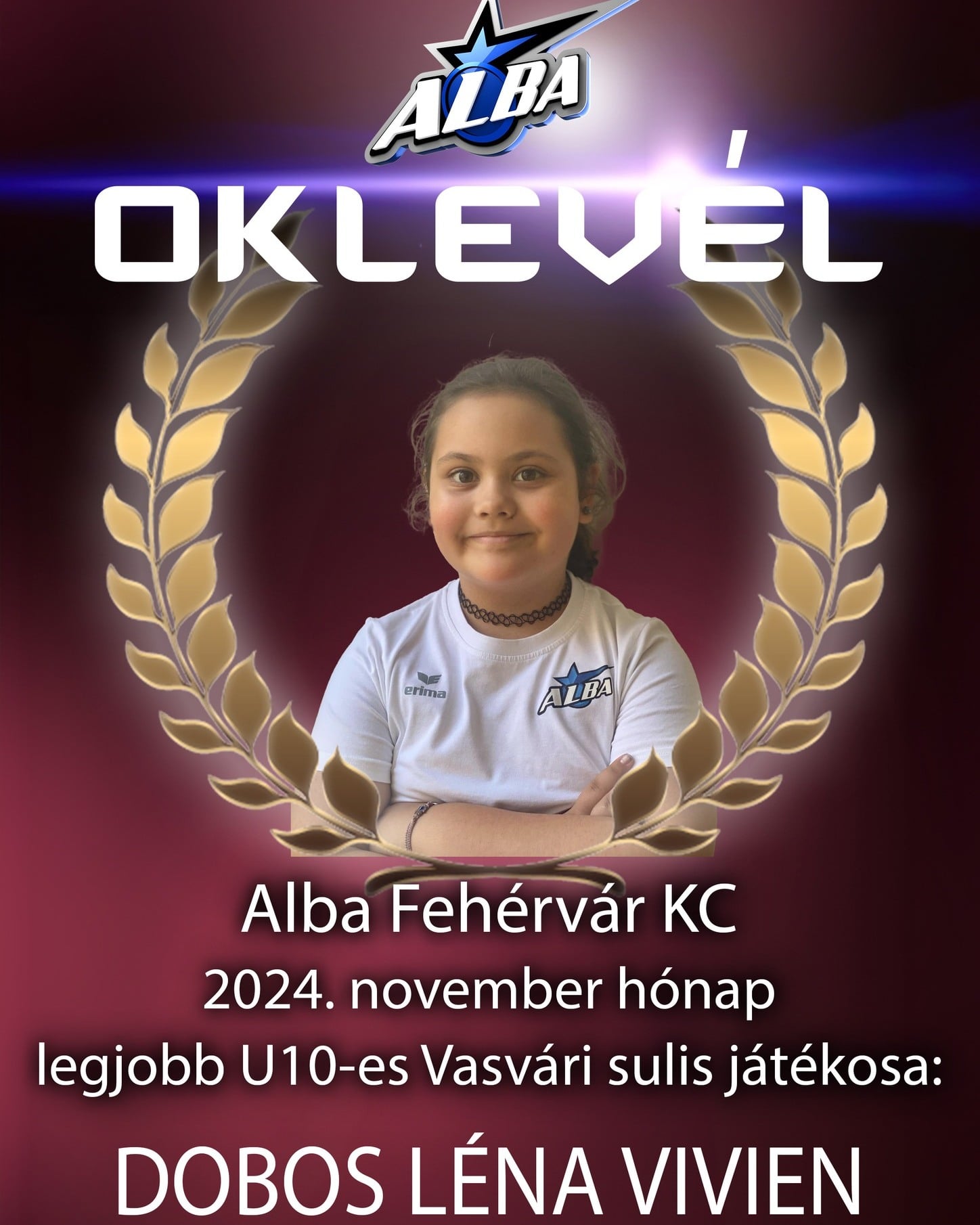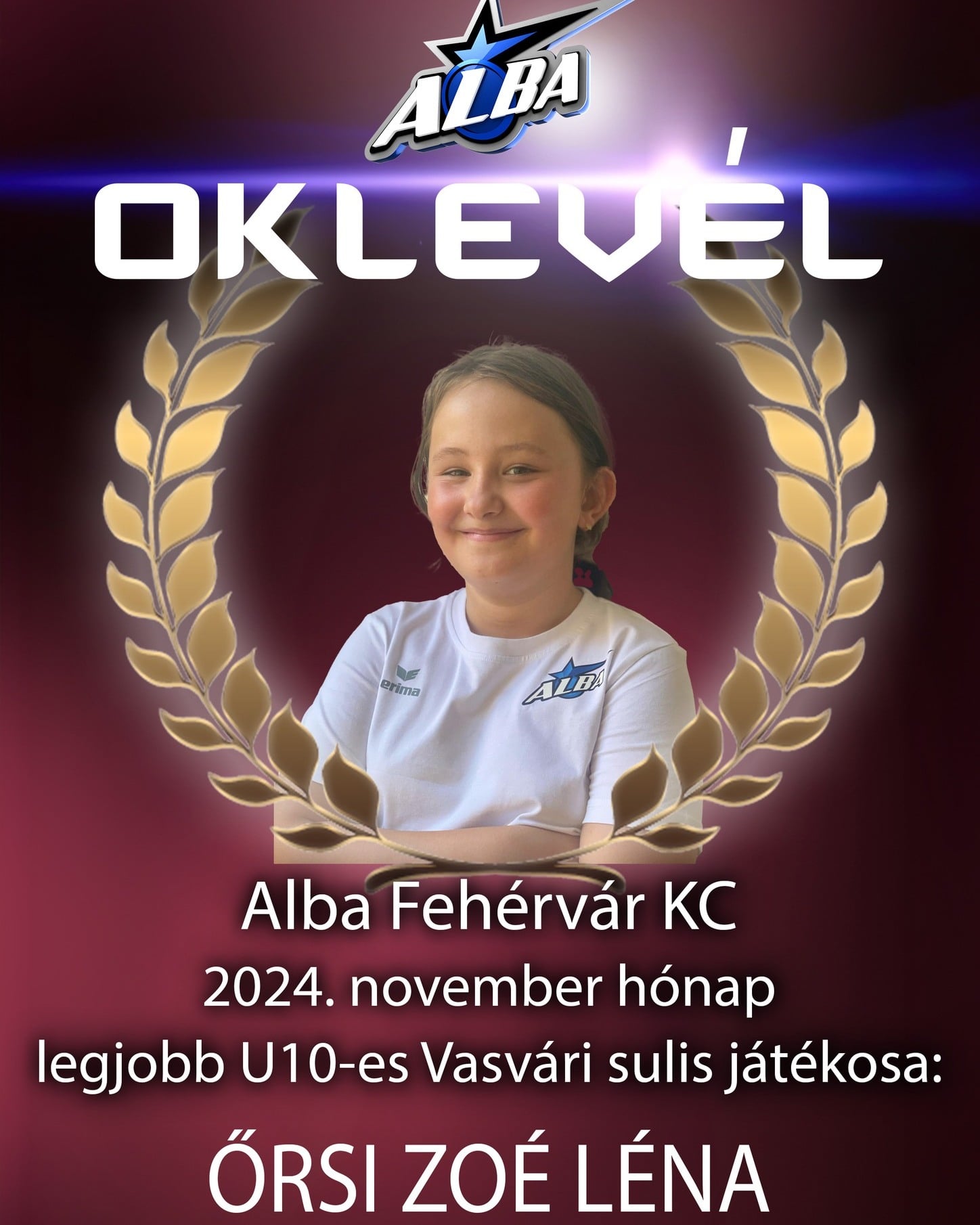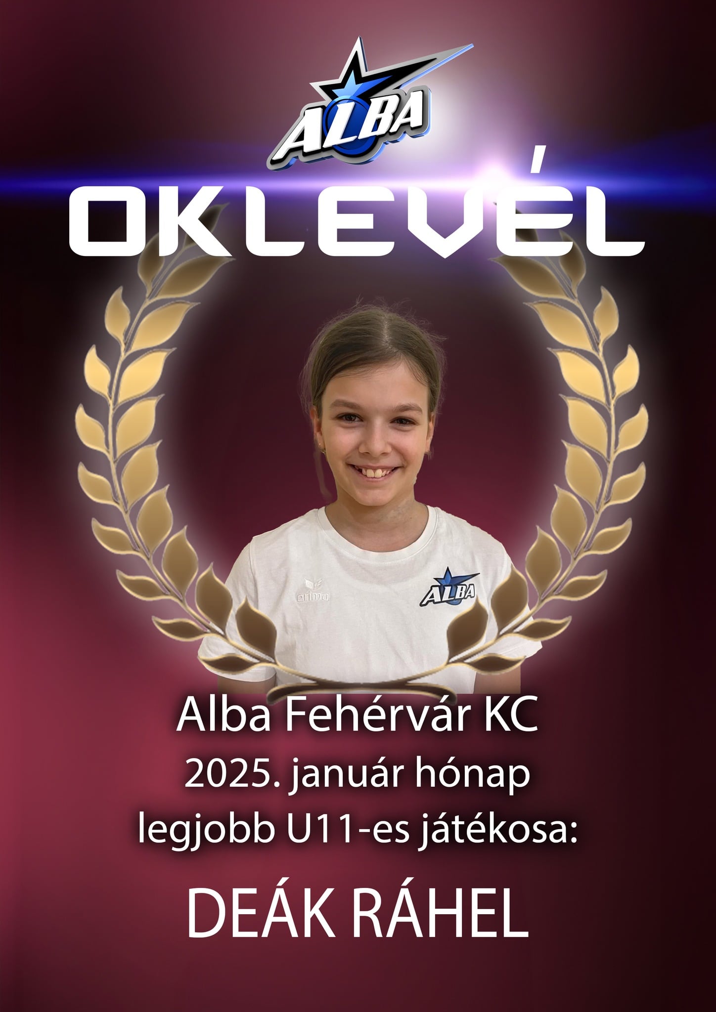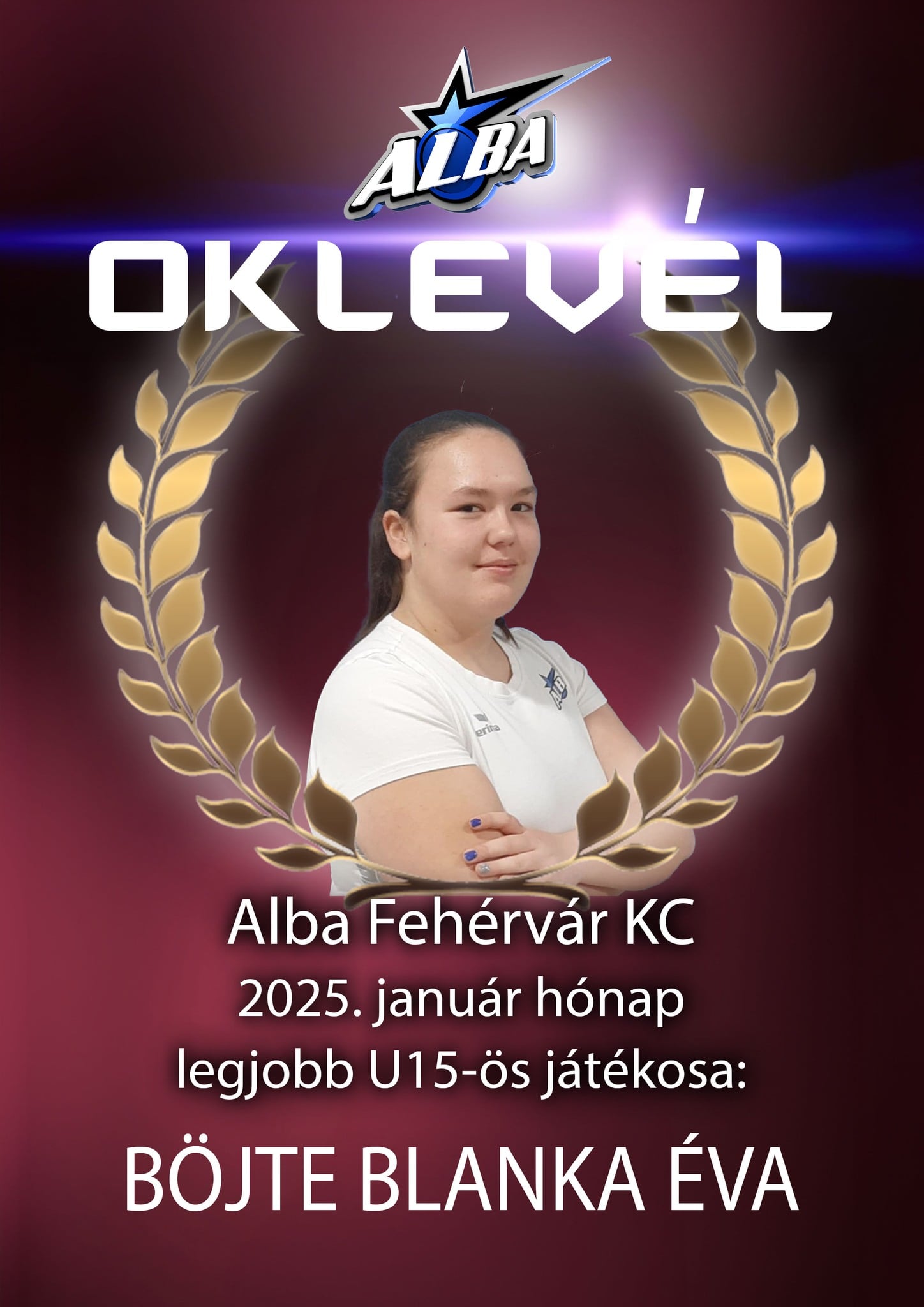 Alba Fehérvár KC kézilabda január legjobbja a Vasvári Pál Általános Iskolában U15-ös korosztálynál: