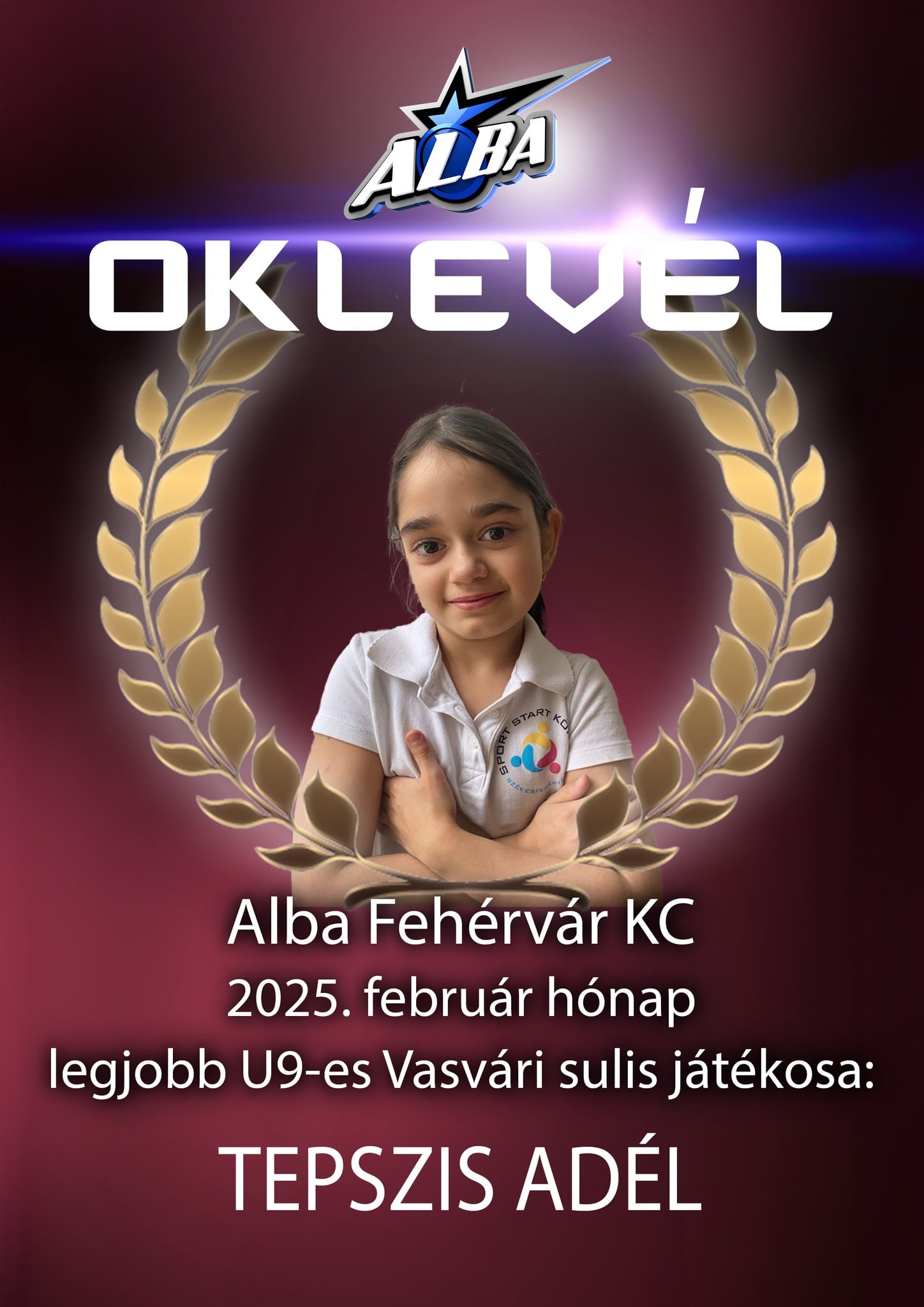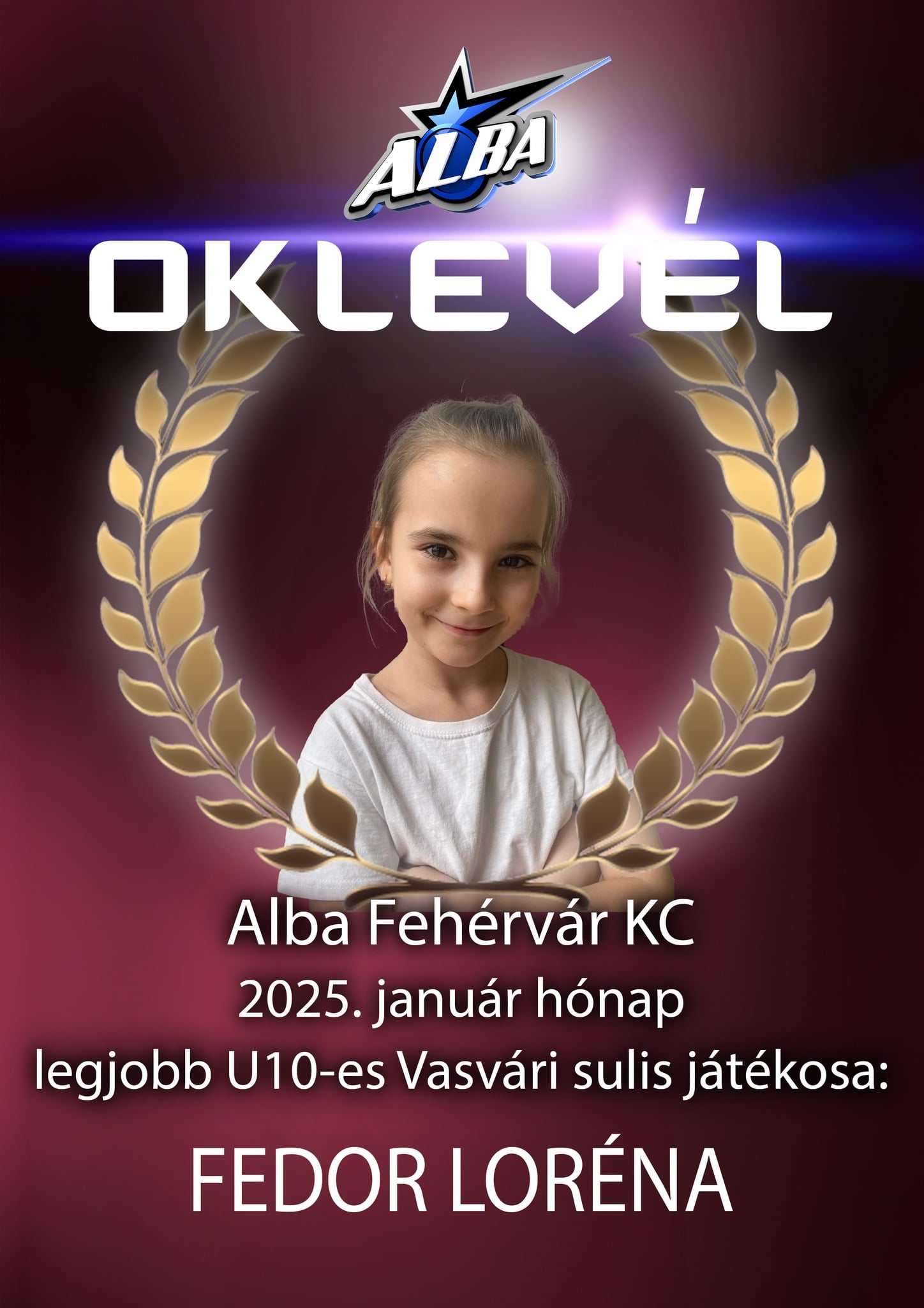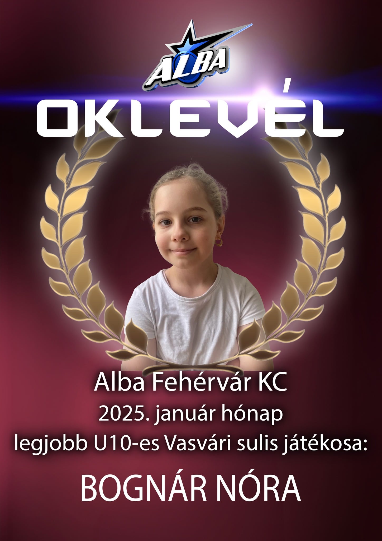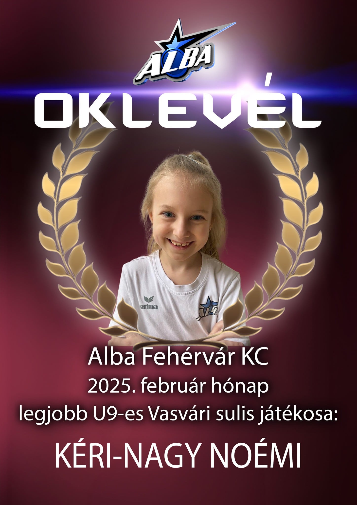 Alba Fehérvár KC kézilabda január legjobbja a Vasvári Pál Általános Iskolában U15-ös korosztálynál: