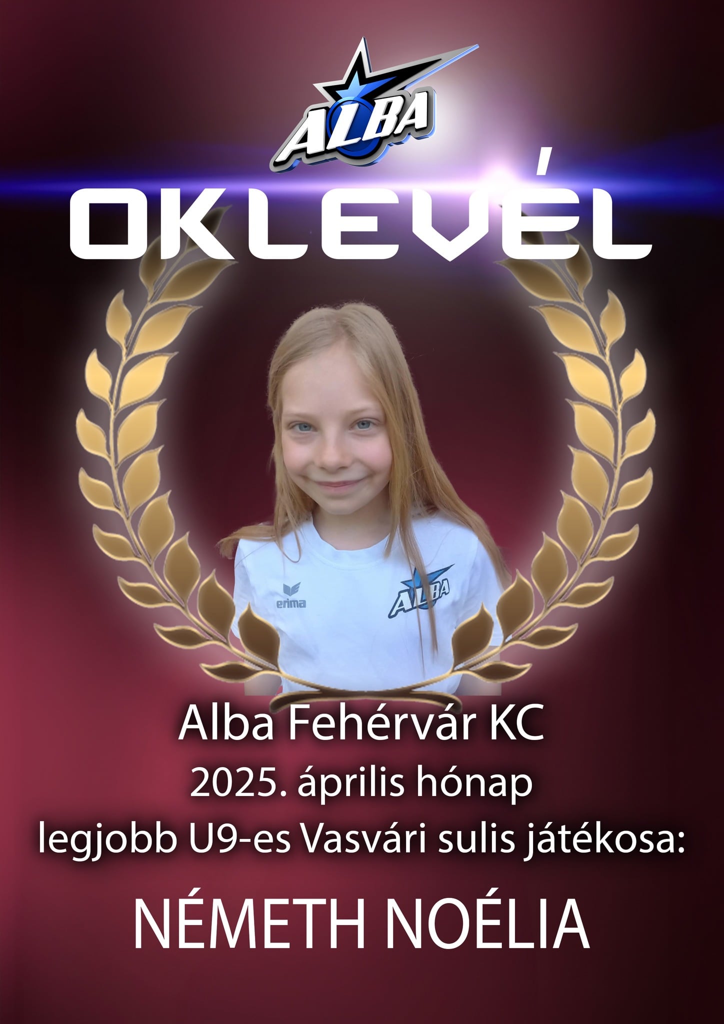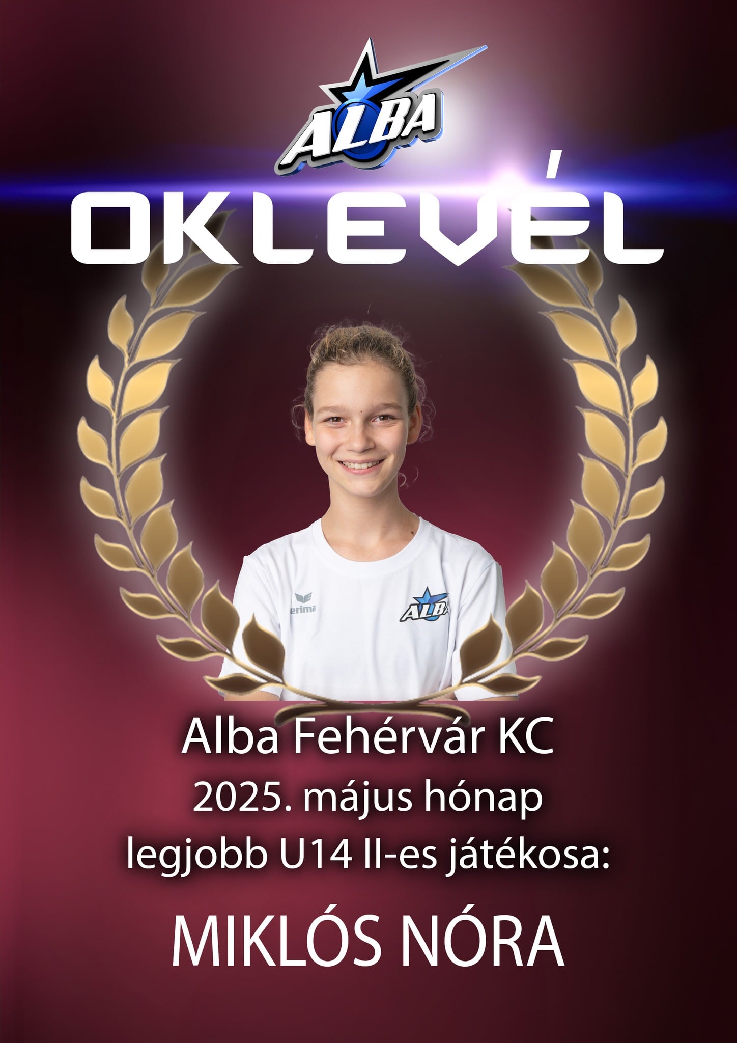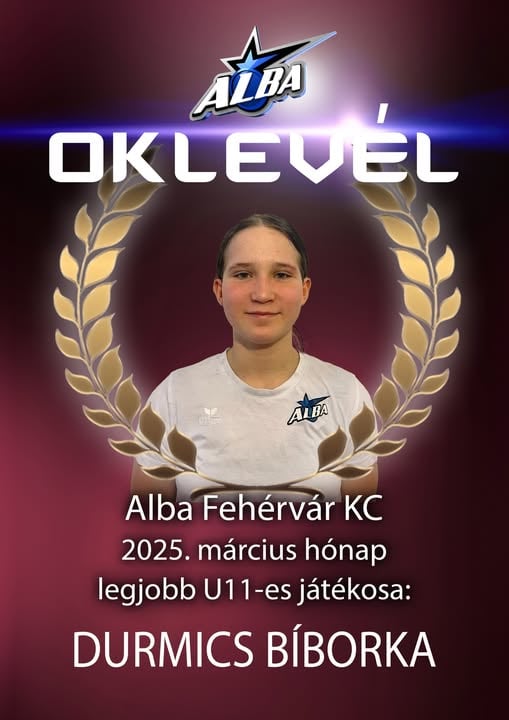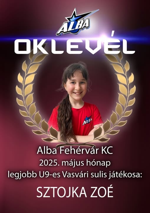 Alba Fehérvár KC kézilabda május hónap legjobbja a Vasvári Pál Általános Iskolában U14-es II. korosztálynál:
