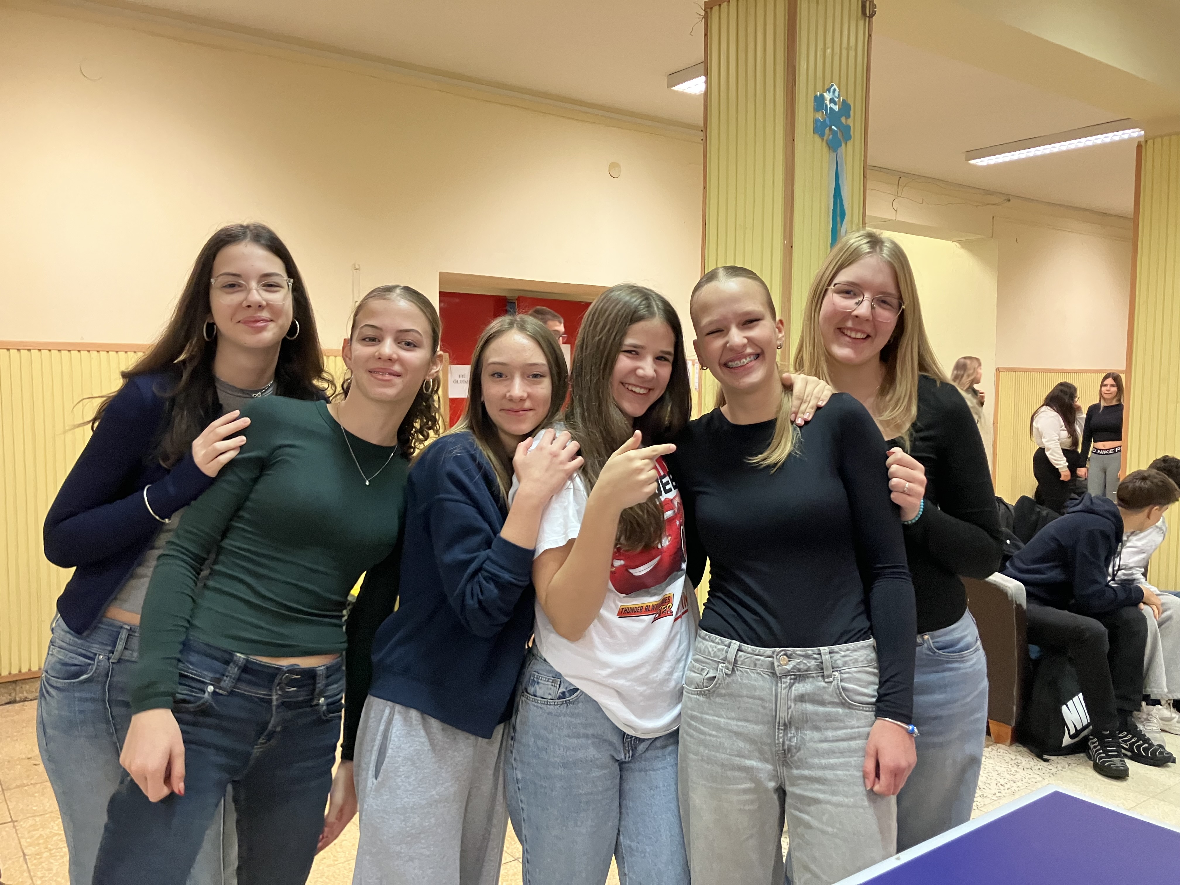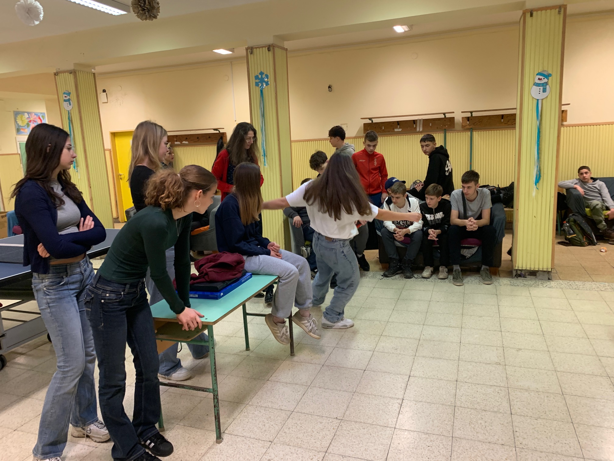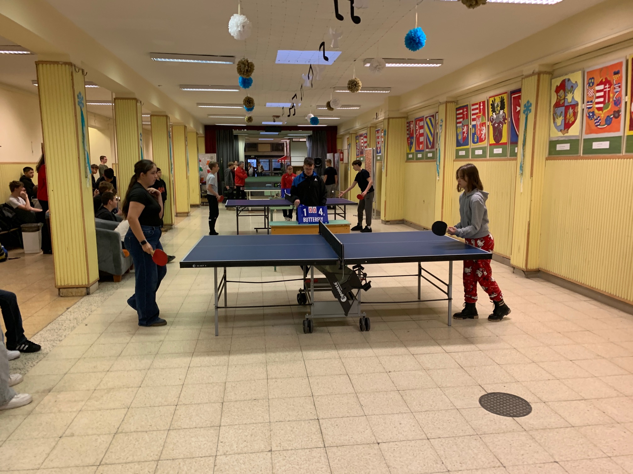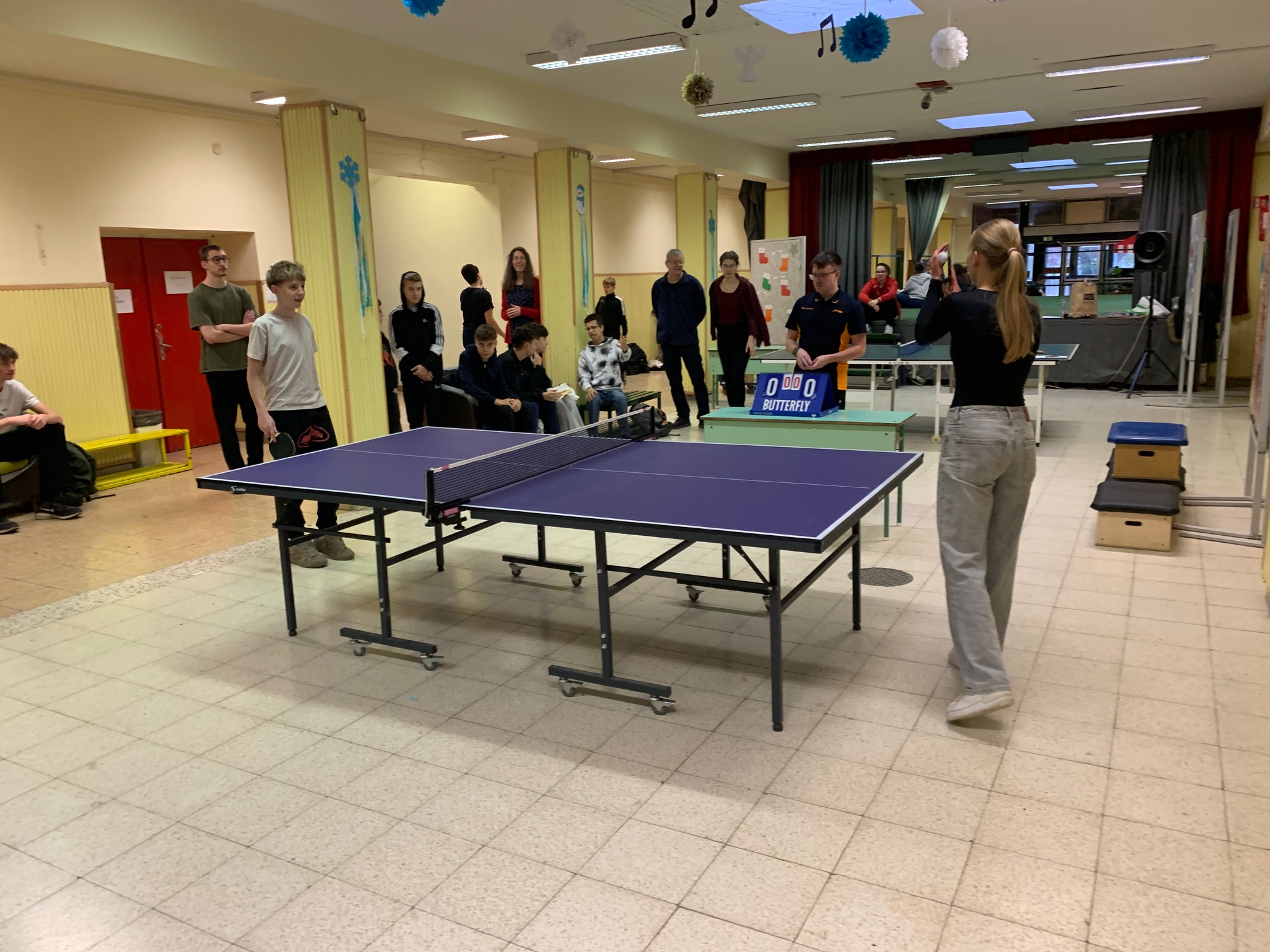 Verd meg az angoltanárodat, ha tudod! – avagy a fent meghirdetett iskolai asztalitenisz verseny első fordulója végéhez értünk: mintegy 30 résztvevő próbált szerencsét, hogy előbb érje el az áhított 11 pontot, mint tanára, és ezzel – kisebb ajándékok és egy HF-felmentés mellett – esélyt kapjon a december 13., szombati döntőbe kerülésre. Izgatottan várjuk, hogy a kilenc továbbjutó, Szerdahelyi Tímea (6.b), Szente Dorka, Balázs Bence, Korponay Nimród (7.a), Csuti Áron (7.b), Bálványos Nóra, Tóth Máté (8.a), Köller Zénó és Rokochuk Igor (8.c) közül kik tudnak majd éremmel távozni.