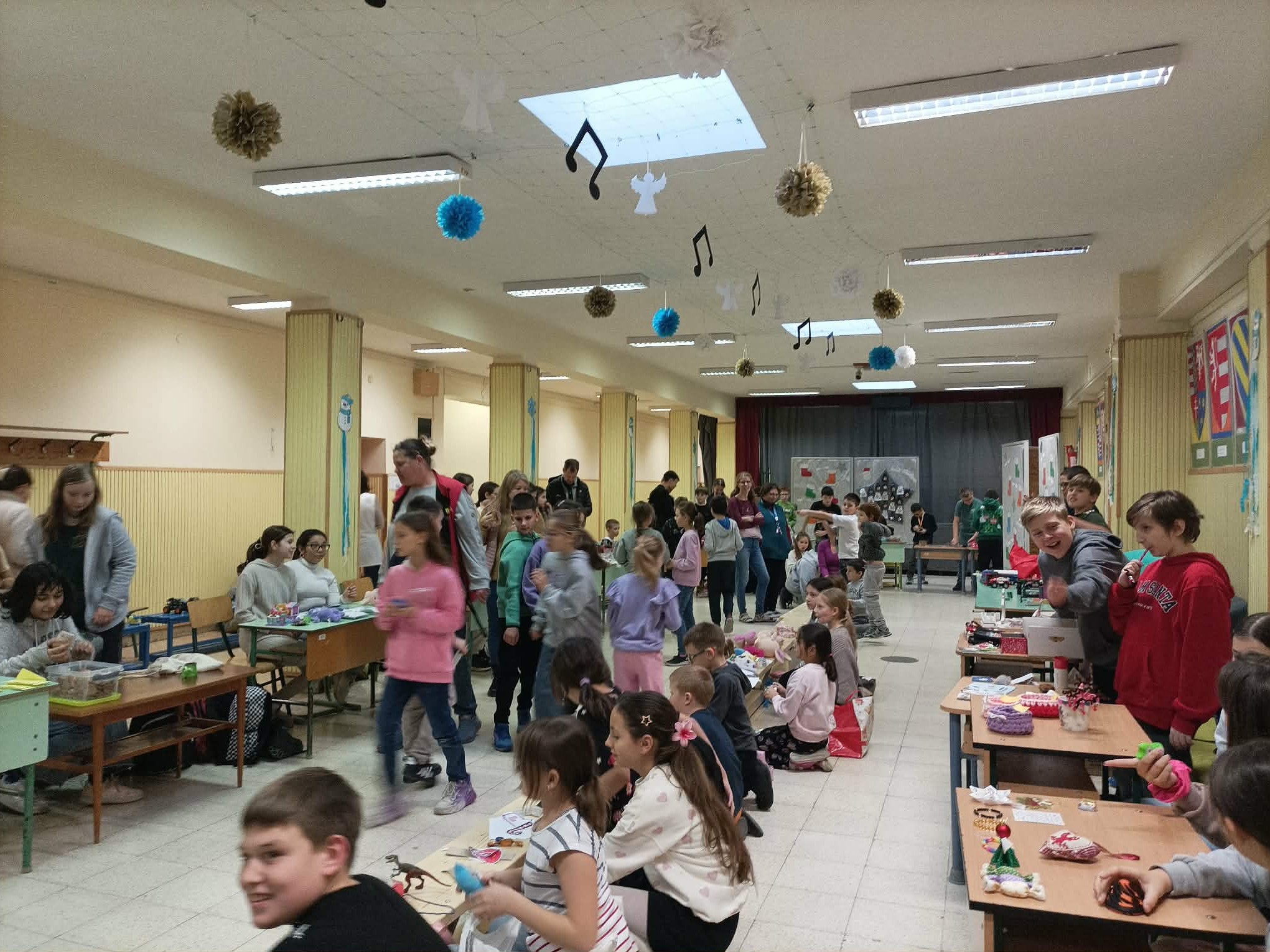 A tanulók állomásról állomásra haladva, zenére végezték a feladatokat. Amikor a zene megállt,