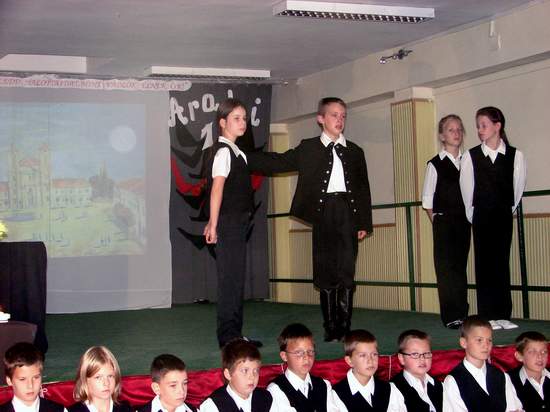 Az emlékműsor előadásában felsős tanulók is segítkeztek.