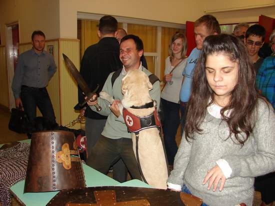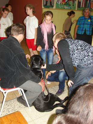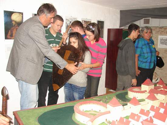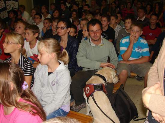 A látássérült vendégeket iskolánk igazgatója köszönti.