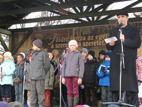 Ó, gyönyörű szép titokzatos éj…; Mennyből az angyal… Kicsinyek kórusa énekel.