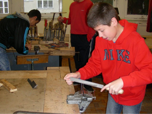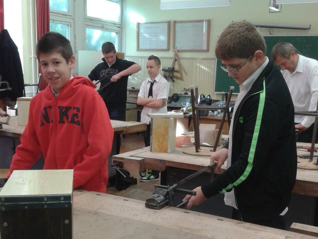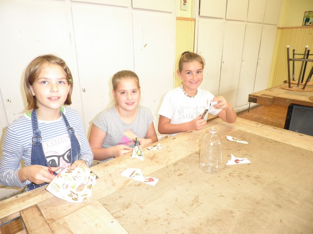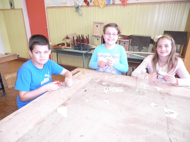 Az alsósok madáretetőt készítenek osztályonként a technika teremben