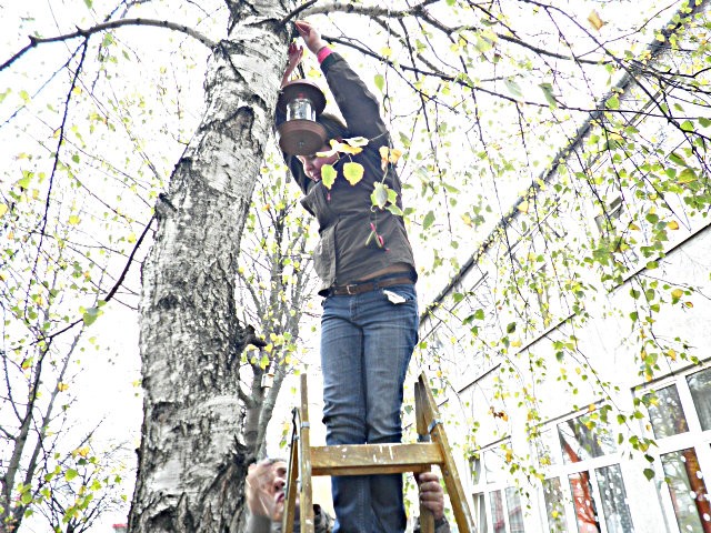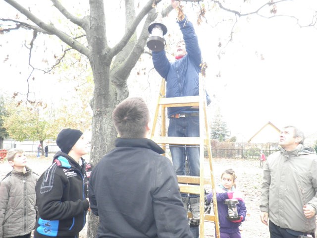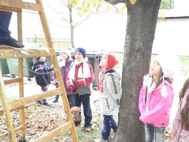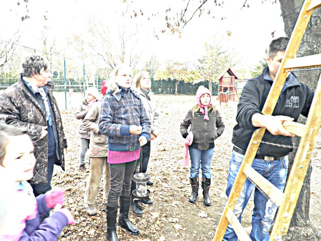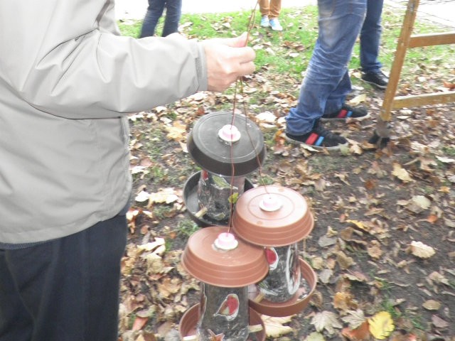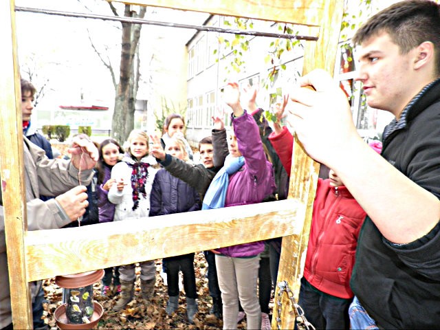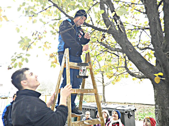 Kicsik és nagyok együtt a madáretetők kihelyezésekor, még a tél beállta előtt