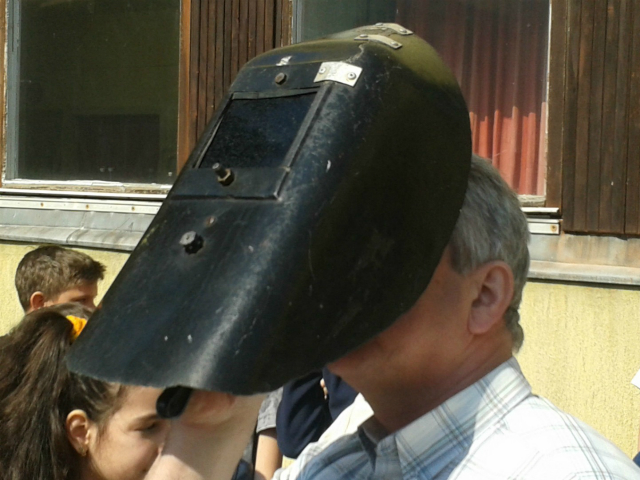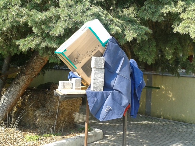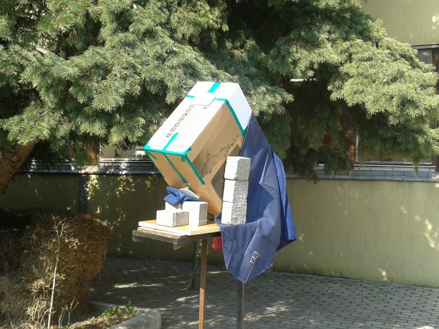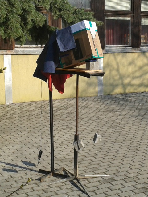 oldalról fénytől védett doboz, melybe a Nap fénye egy apró lyukon keresztül hatol be.