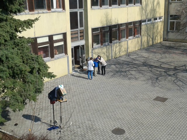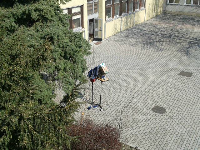 A megfigyelést a camera obscura (latin, jelentése: sötét kamra) segíti egy webkamerával.