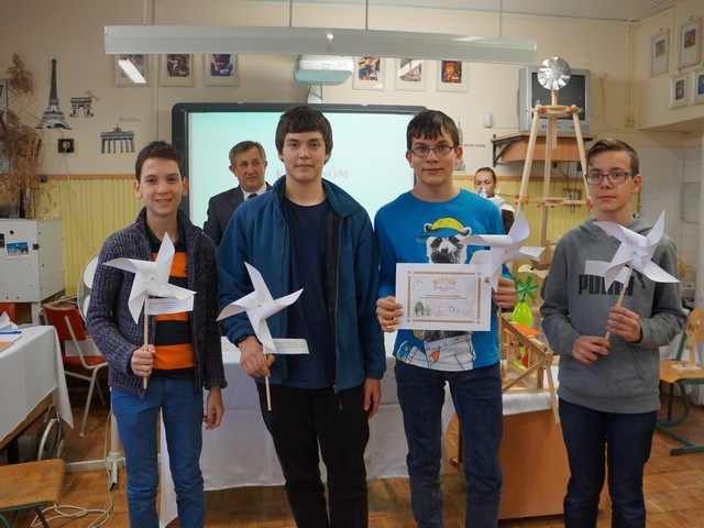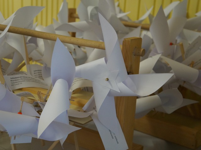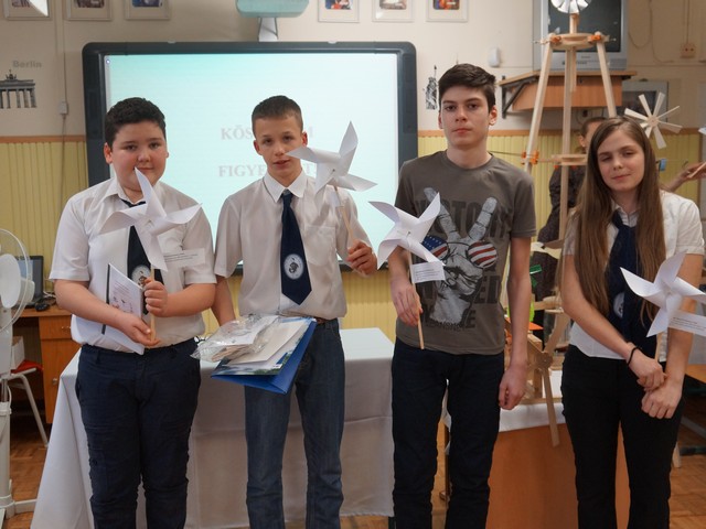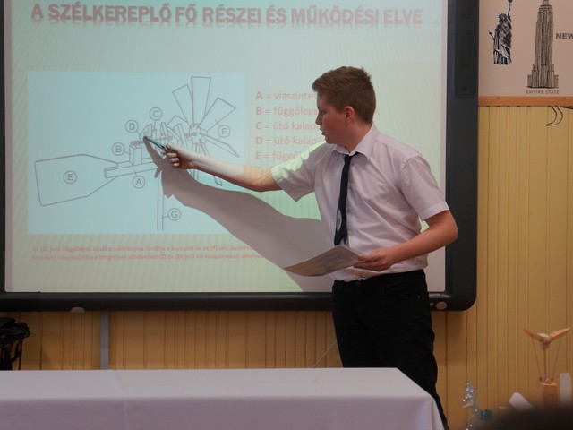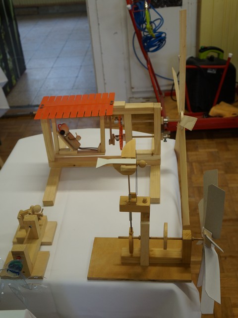 szélkalapács, szélkerepelő, szélmalom, szélmalom generátorral, széldinamó és egy Savonius generátor. Bemutatásra kerültek a